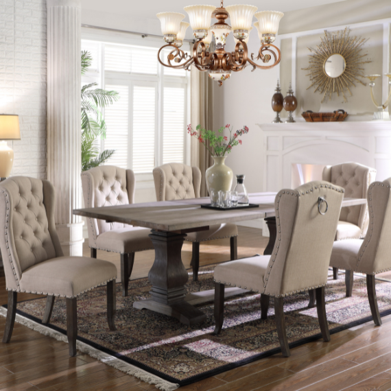 Wooden Dining Table Sets with Fabric Chairs- Milton