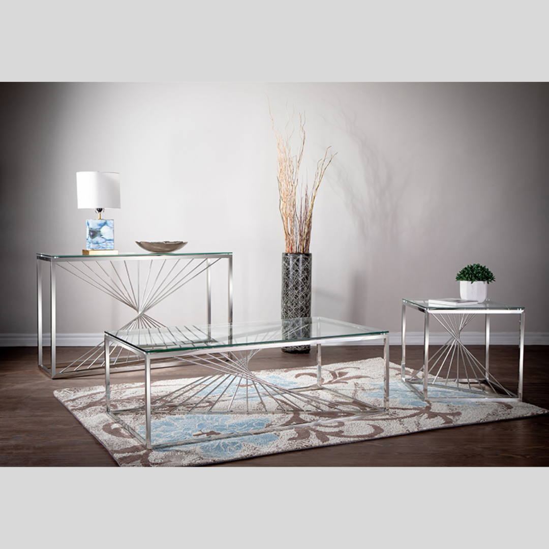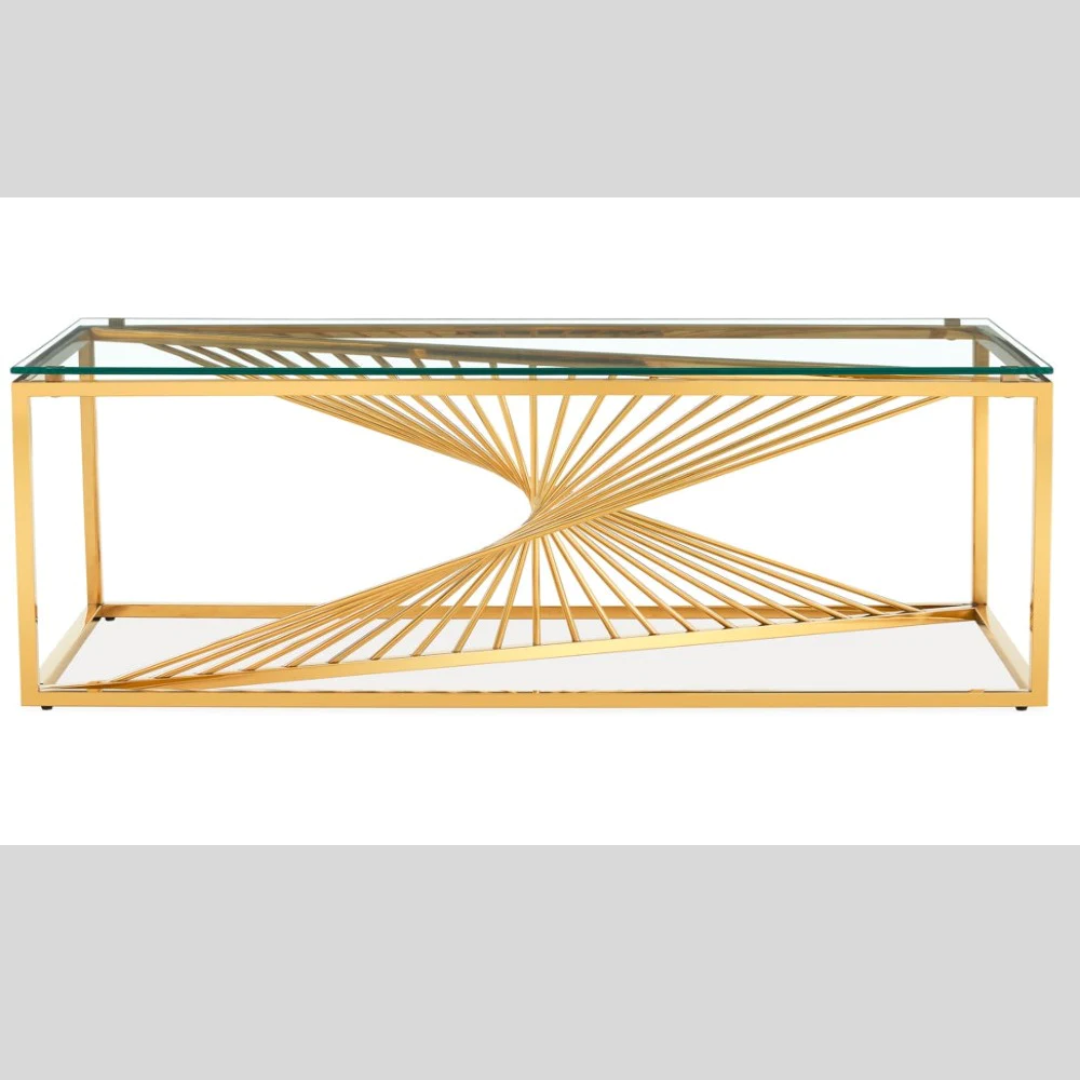 If you’ve been holding out for an ultra-contemporary look that’s delightfully unique, this rectangular coffee table is clearly worth waiting for. Golden and silver-tone metal rings design are topped with clear glass with polished edges for a masterfully modern look with minimal fuss.